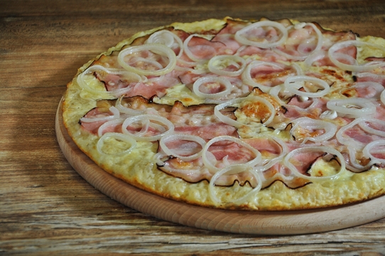 tomat, eidam, šunka, ementál, hermelín, uzený sýr, kuřecí a vepřové maso, paprika, kukuřice, klobása