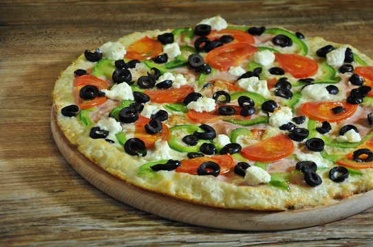 tomat, eidam, šunka, rajčata, olivy, paprika, balkánský sýr