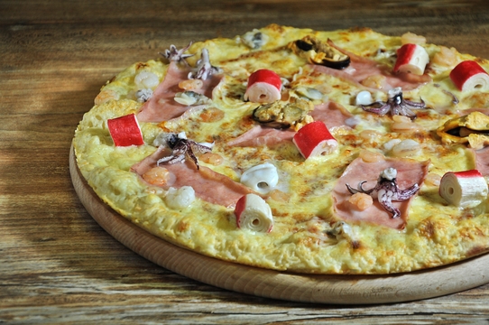 tomat, eidam, šunka, žampiony, kuřecí maso, kukuřice