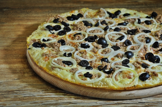 tomat, eidam, tuňák, cibule, olivy